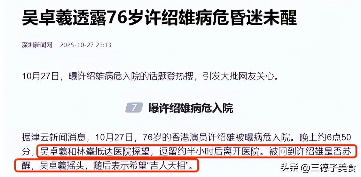 此前,從未聽說過許紹雄身體有什麼狀況,而他每次和觀眾見面的時候,也總是活力滿滿,精力旺盛。