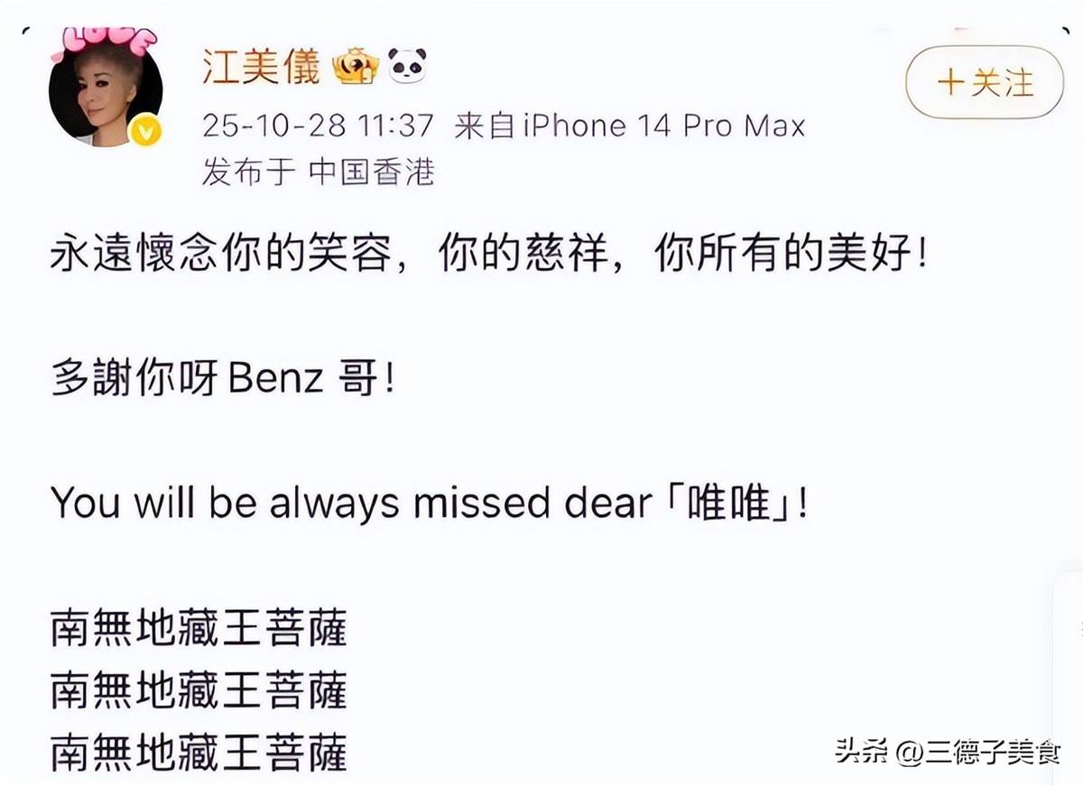 「永遠懷念你的笑容,你的慈祥,你所有的美好!多謝你呀,Benz哥!」