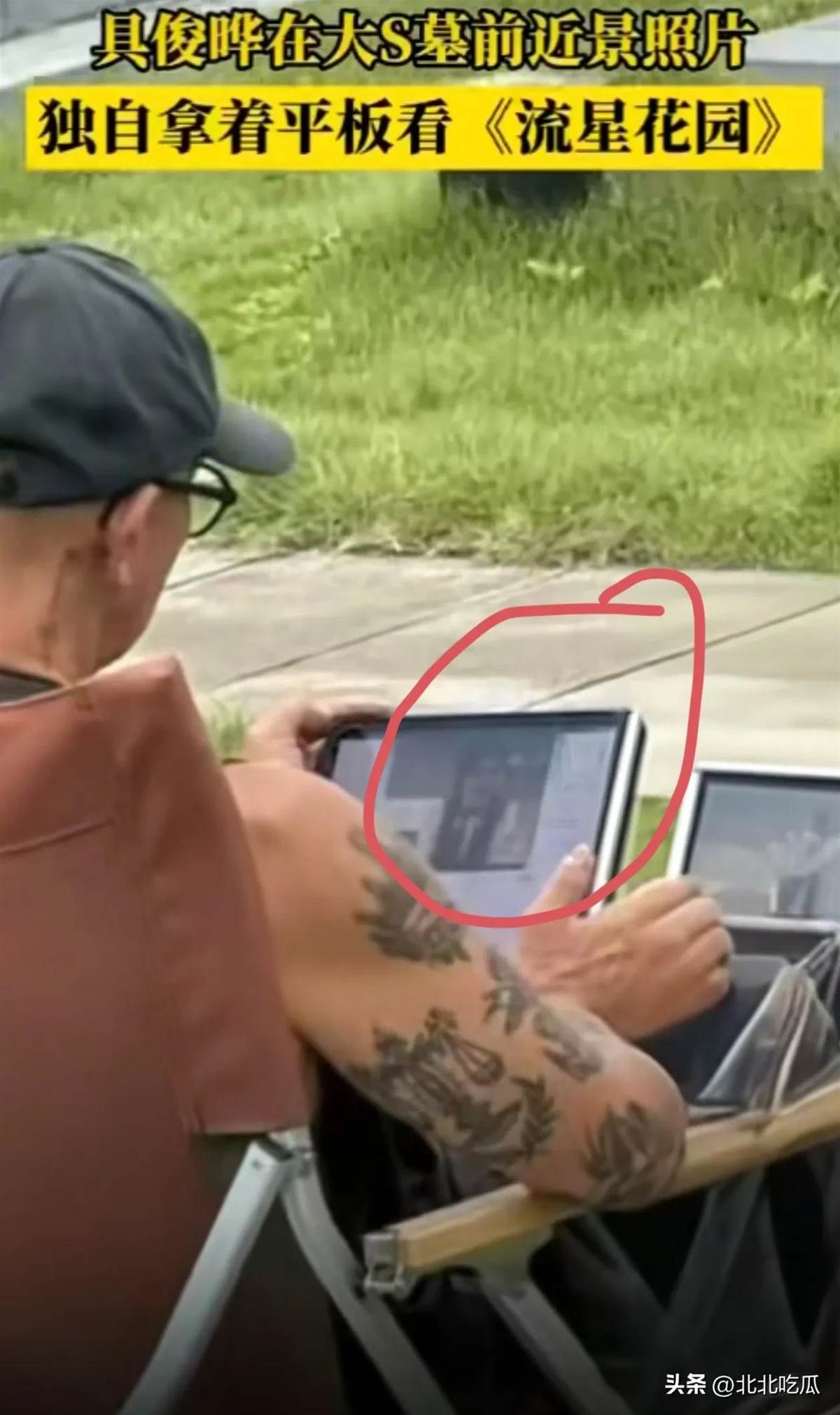 不僅如此,他還拿著平板電腦,靜靜的追劇,看的正是大S的成名作《流星花園》